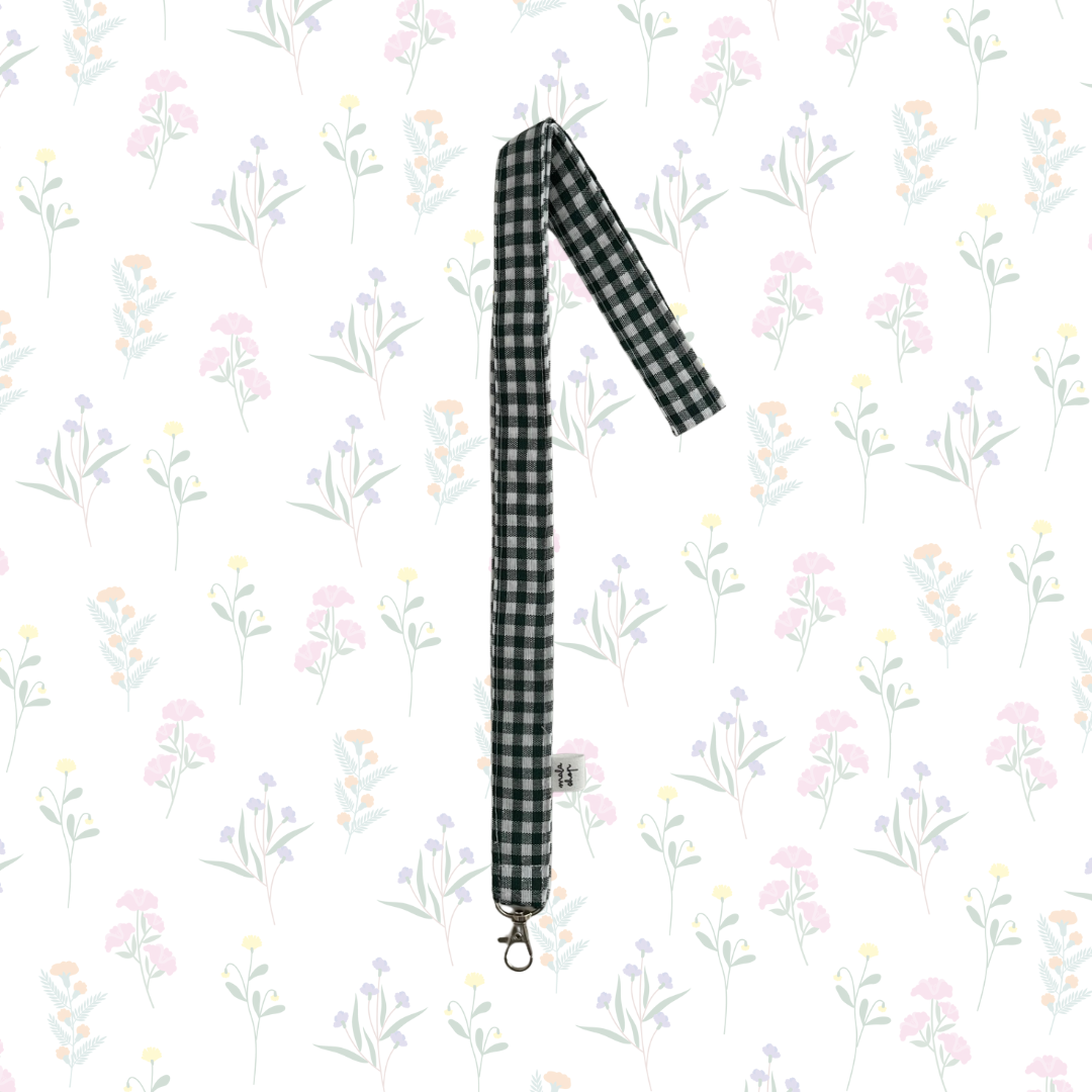 Cuelga llaves VICHY VERDE en algodón con enganche plateado de metal.
